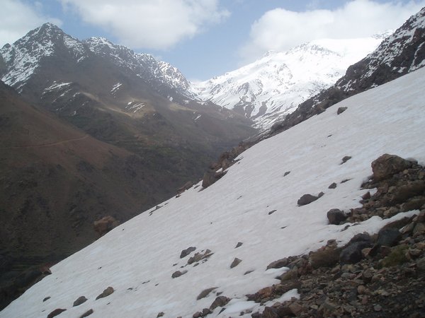 In Imlil, I ate at the only open restaurant of the dozen or so present, and then checked into a $5 motel where the advertised "scalding hot showers" had sadly gone on the fritz a few days before. Imlil is just outside Mount Toubkal National Park, which is home to the highest peak in North Africa. Toubkal is oddly hard to identify given its monstrous size, so I just started walking down a road that I imagined would eventually take me somewhere near the summit. Several people offered to rent me a "small boy" for around $10 to show me the way through the mountains, but as usual, I presumed I could figure it out on my own.