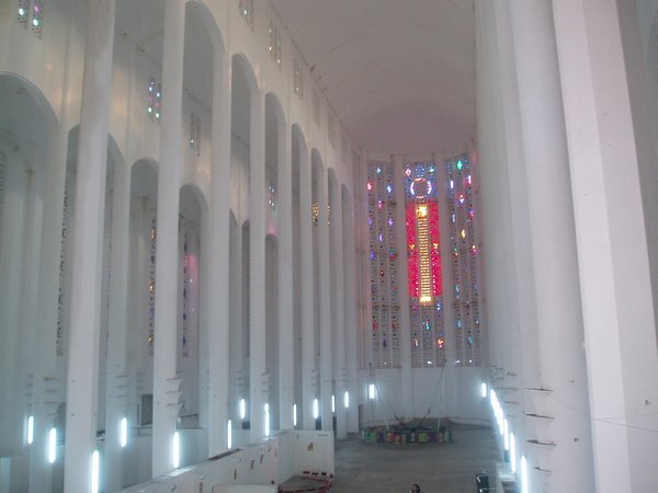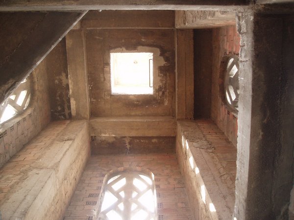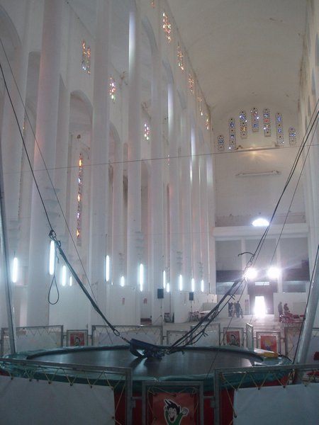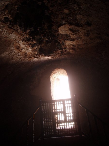 The Cathedral of Sacre Couer is a huge French construction that has long since been gutted and left to rot. When I dropped by, they were hosting a children's art festival in the cavernous, empty interior, and a Zero-G chair was set up where the altar once had been. This was of course, vaguely unsettling, to see this great monument to my religion and to western civilization, irrevocably conquered and resting like a great bleached skeleton in an alien landscape. But when some random guy offered to let me climb the bell tower for $2, I hardly saw how I could refuse.