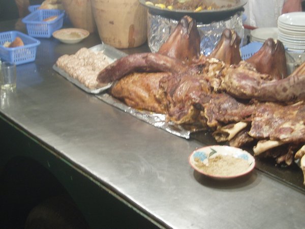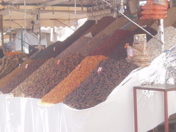 Distinct from many cities around the world, the Rabat train station delivers you not to a dingy ghetto, but to a grand, palm-lined boulevard that takes you through the ville nouvelle, with its monumental banks and government offices, and delivers you through the ancient walls, straight to the heart of the old city. The medina is a maze-like array of streets filled with shoes, carpets, animal carcasses, fruits, lamps and every other conceivable good. The amount of street food is staggering; lines of restaurants sell the typical couscous and tajines for bargain prices, but beyond those are carts selling pralines, pastries, chocolates, roasted chestnuts, chickpeas, and nutella-coated pancakes (just to name a few). Naturally, I passed up all of these mouth-watering treats, and selected as my first culinary experience of the trip, the snail cart. Fifty cents bought me all the snails I could eat, which turned out to be right around 4; these were not your typical succulent, butter-soaked French-style escargot - these snails tasted like dirt and old dish water; I ended with one that had the size and appearance of a giant west coast banana slug - a quick word to the wise: avoid the big ones.