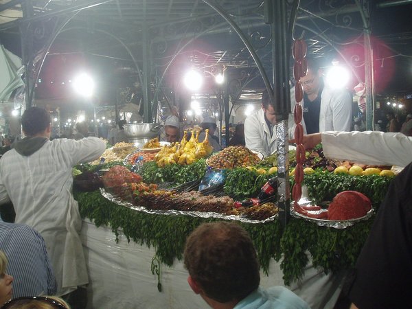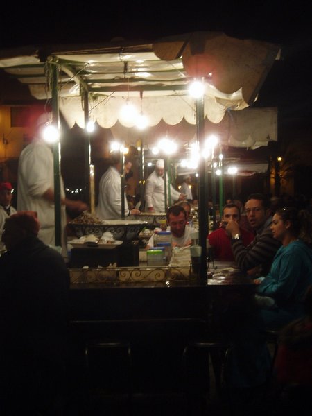 The central square of Chaoen is home to a string of cafes that all serve approximately the same stuff for approximately the same prices. I chose one (much to the chagrin of the tout next door, who verbally accosted my mother for the duration of my meal), and got a 4-course meal (Moroccan salad, chicken tagine, cake, mint tea, banana juice, bread, and olives) for a smidgeon over five bucks. The nightlife was about the same as before - the whole town crowded the streets for no apparent reason - but a series of rolling blackouts made things more fun. The biggest crowds were gathered around the snail carts, though I wasn't quite ready to go down that road again.