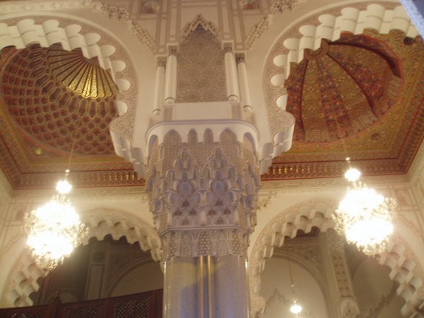 I crossed the city to the great mosque and peered through the massive doorway; the place was only open to tourists on guided tours and only at three times in the morning and afternoon, so, while the faithful freely walked in and out, we white people stood precariously teetering on the threshold, trying to get a good shot of the exquisite interior.