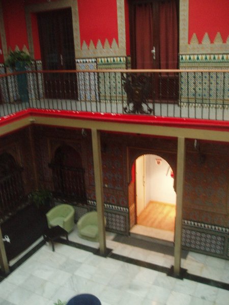 I secured a spot in one of the 14-bed rooms in Cat's Hostel for 17 euros. This turned out to be a wonderfully efficient and pleasant institution that managed to comfortably cram hundreds of backpackers into a space the size of a two-story house. The building is historic and looks like it has been pulled straight from the streets of Marrakech.