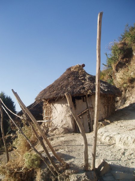 Ten minutes after we started again, we blew a tire (two in one trip!) and so we all got off and sat beneath the scrubs on the barren leeward mountainside. I thought this a good opportunity to take pictures of the dramatic landscapes and frequent straw huts, so I started snapping away, but I failed to realize the man taking a dump in a bush just below my frame; he stood up and turned around to see my camera pointed right at him, and considerable awkwardness ensued as I realized I had no good way to communicate to him that I was not a filthy pervert.