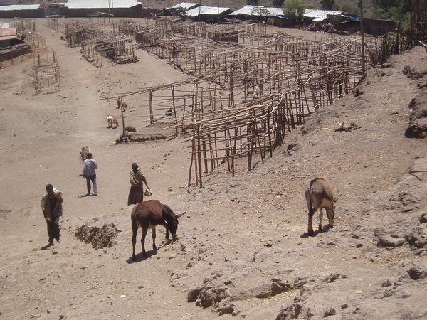 The city market was a larger, slightly more organized version of those I'd seen previously. Markets in Ethiopia seem to be remarkably squalid affairs - blocks of vendors, interspersed with avenues filled with trash and filth, sell all manner of fruits, grains, and vegetables from towels and baskets. Other sections sell a small selection of consumer goods such as sandals, jerry cans, and stoves made from old US relief tins.