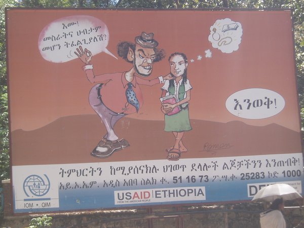 A hassle-free bus ride got me to the city center for a quarter (though I apparently paid twice the going rate). Addis has nearly as many English translations as it has Amharic signs, and most of the important intersections are signposted, but it is still a mess of confusing urban sprawl with no clear center or districts, and I spent the better part of 4 hours hauling around my ridiculously heavy pack. Finding the hotels listed in the book (or any reasonably-priced, non-hourly places to stay, proved practically impossible.