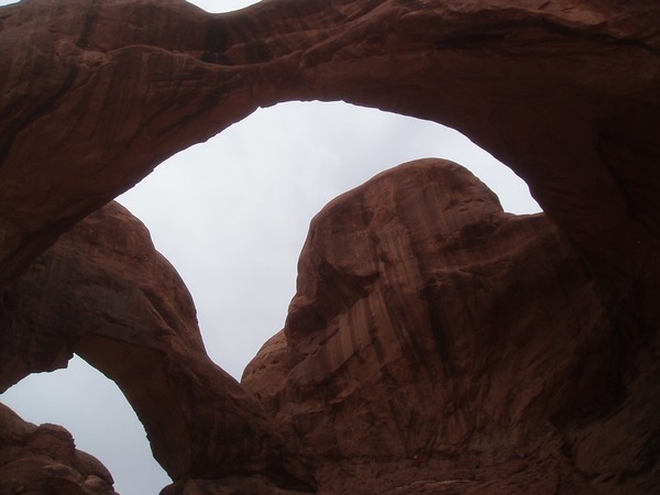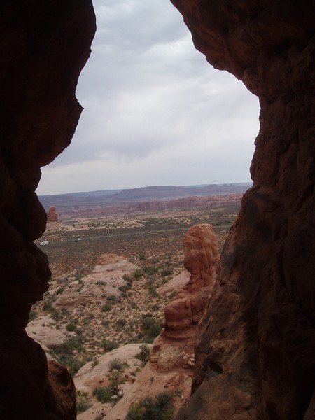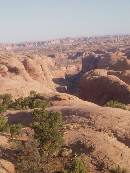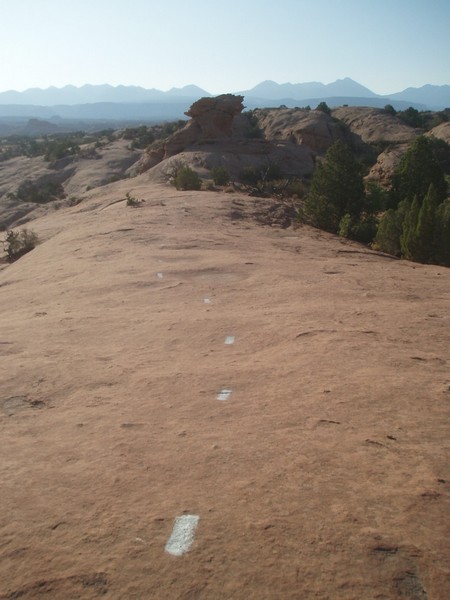 Arches National Park was only a few miles outside of town, and we were soon winding our way up the park's twisting, arch-littered roads in search of good climbing spots. Once again, we had only a vague listing of rock fields and rough locations, and no good way to track down bolted routes within those zones. We scoured the Garden of Eden for the telltale glints of metal but found nothing. We eventually opted to give up and go for a hike instead.