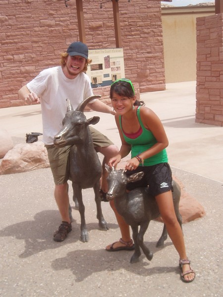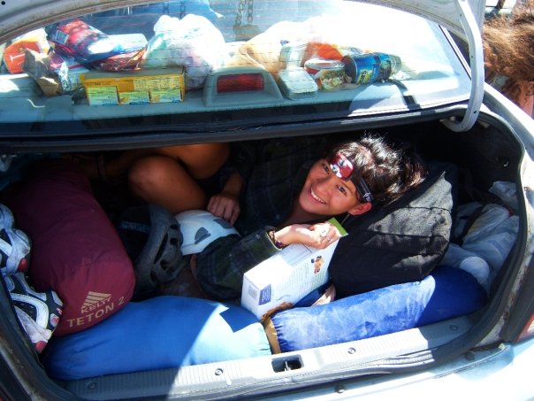 The next few hours of driving, being in Kansas, were amazingly uneventful; we stopped in the tiny village of Alma to get free cheese samples at the Alma Creamery, and then continued on to the mid-sized town of Selina which held the only Walmart for hundreds of miles. We got a list of emergency locksmiths to call, but after getting quotes over $100 for making a new key or ripping out the lock entirely, we resolved to fix the thing ourselves. An extremely helpful auto center employee lent us tools that we could use to rip out the backseat; we soon found however, that even after removing all the bolts, the top latches still held and we had no choice but to send Van burrowing through the small crack formed by prying up the seatbacks. Armed only with a headlamp and some vague instructions from Scott, Van managed to navigate through our bags and locate the emergency release, and, after a tense five minutes, she emerged victorious from the open trunk, the entrails of the defeated beast strewn across the parking lot. We identified the problem as a security mechanism that, when activated, only allowed access via the key; we couldn't figure out how it had been triggered, but we flipped it to off and closed the trunk. Upon closing, the trunk reactivated this mechanism and Van reluctantly made a repeat performance of her automotive spelunking; we then proceeded to cover the security switch and the latches on the seatbacks with copious amounts of ducktape so that access would remain open via both routes. We put our mangled car back together, bought flowers for the lady who had helped us, and set off on the final stretch to Colorado.