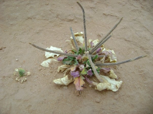 The caves we were looking for were in another branch of the park some 45 minutes away from the visitor center. We took a mostly paved road to an undeveloped parking lot and began a brutal hike into the desert. Besides offering no shade from the 110-degree heat, the trail was chock full of disgruntled plants that sought to stab, impale and lacerate us with every step we took. Van, who started out in nothing more than shorts and a sports bra, soon succumbed to the heat and the repeated assaults by the desert foliage, and opted to return to the car after half a mile to spend the rest of the day waiting in the shade. We would discover later that she had gotten lost immediately after leaving us, and had wandered around in a daze for two more hours before eventually stumbling upon the parking lot; the last hour of this impromptu hike was carried out with a large cactus spine protruding from her toe.