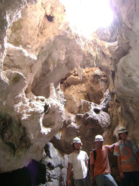 The next cave involved an even harder hike which ended with a steep, slippery uphill trail that took us through a slew of plants that seemed intent on stabbing out our eyes. Goat Cave held one gigantic, smelly passage with few formations. The main attraction was a skylight which I would have rappelled through in a second, if only I had had the energy to scramble through the cacti and up the rock face. There were also some old mining supplies scattered about. We returned to the car by the same route we had come and began the long drive to Austin.