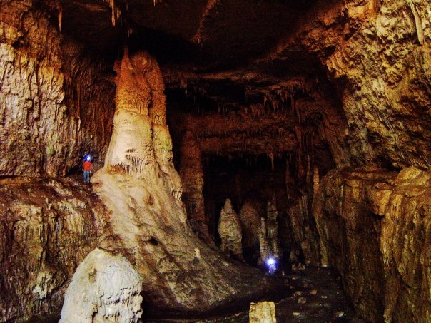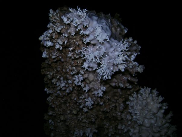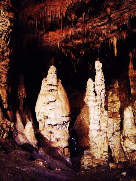The rest of us fared little better. Once again, we found the directions to be less than stellar, and we were thus lost for some time in the maze of ancient creek beds before we found the trail going straight up the mountain to the entrance. The incline nearly killed us, but we were able to collect ourselves in a cool rock shelter, and then to push on to Christmas Tree Cave. I slung a rope around a boulder and we swung down into the refreshing, 56 degree cave. The one and only chamber of the cave was only 800 feet long, but like the others, it was packed with formations. We spent an hour wandering and recuperating and then returned to the surface.