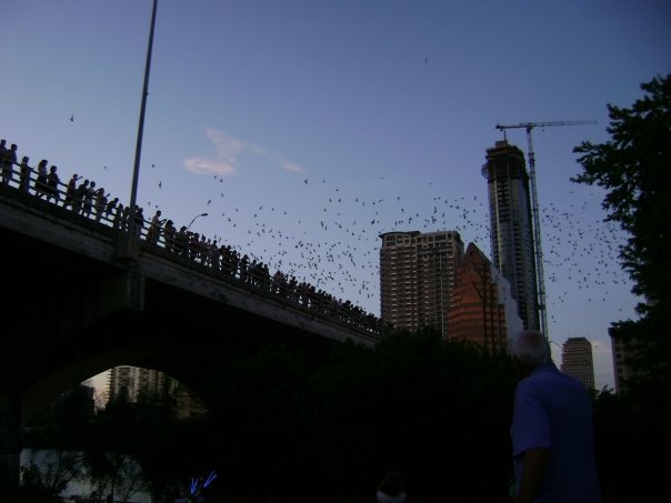 We walked along the Town Lake trail to Congress Ave. bridge to see the massive bat exodus, then went up to Sixth Street to catch a live show. We soon discovered that all the bars on the street were 21+, and the music that drifted out the open windows would therefore remain just out of reach; we stopped by the Alamo Drafthouse to pick up tickets to a giant spider flick starring William Shatner, which was only a buck and included a free rubber spider for all in attendance, but found that it was already sold out. We decided that we were all on the verge of collapse anyway, so we bought tickets to the Wednesday midnight movie, and headed for Pace Bend County Park to sleep. By some strange coincidence, the movie we would watch the following night, Lady Terminator, and another B-movie that was filmed at Pace Bend, shared roughly the same bizarre premise - I'm not going to mention it here so as to preserve the decency of this blog, but mature audiences are welcome to IMDB it.