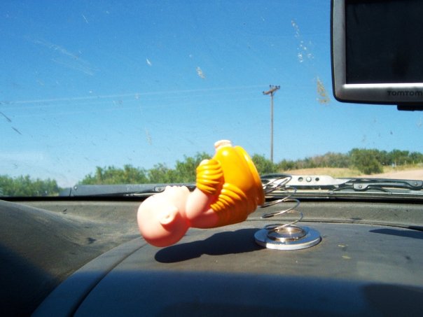 This bobbling Buddha drove me nuts for the first few days; then one day he got a little too excited on a bumpy gravel road, and bobbled his last