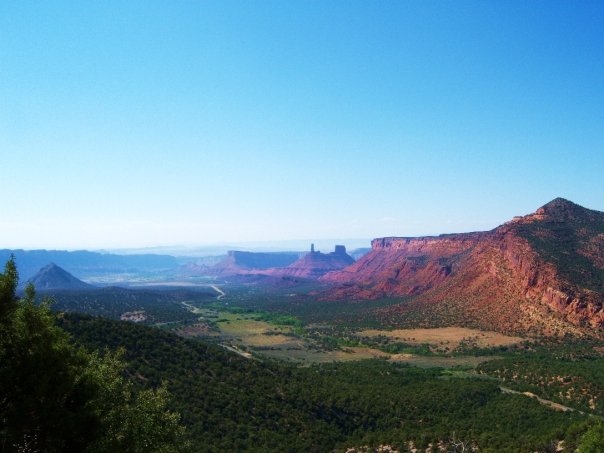 The drive to Castle Valley was far more epic than it had any reason to be. A trailhead that was supposedly accessed via "all paved roads" somehow came to involve an interminable series of gravel roads that ran up and down the mountainsides with no signs indicating the landmarks that we sought. When it became apparent that we would surely run out of gas before completing the return trip, we decided to reconsider our interpretation of the directions, and soon found that we had driven about 15 miles in the wrong direction; we coasted back downhill and located the nearly invisible turn that led to the start of the section. The first 5 miles of the section were straight uphill along a paved road; we drove Van and Andrew about three quarters of this distance and left them to negotiate the rest on their own. Fortunately, the brutal slog that started the trail was followed by about sixteen miles of continuous downhill.