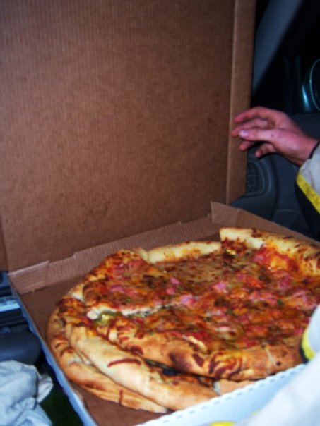 Van made a quick recovery in the makeshift sauna of her car and we went in search of dinner. When we arrived at Homeslice Pizza, we found the chef smoking outside and inquired as to whether the place was still open; he replied that it had just closed, but he would be happy to sell us the leftover slices from the day (a grab bag roughly equivalent to 3 large pizzas) for $10. So we sat in the dark parking lot and feasted on the cold assortment of pies, convinced that we had found the best deal in town.