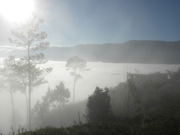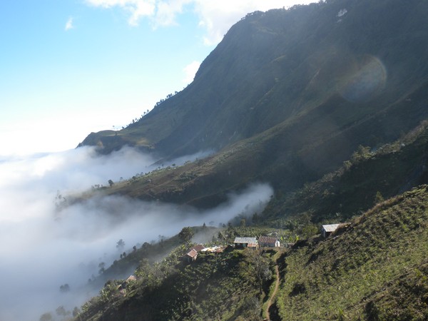 Even though everyone went to bed at 8, no one was up before 7 in the morning. The elderly priest gave me a banana for the road and rejected my offers of a donation. I snuck out of the village quietly and successfully evaded my youthful "guides".