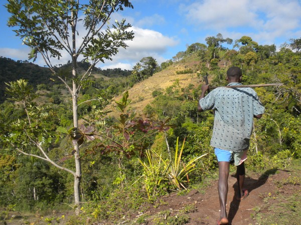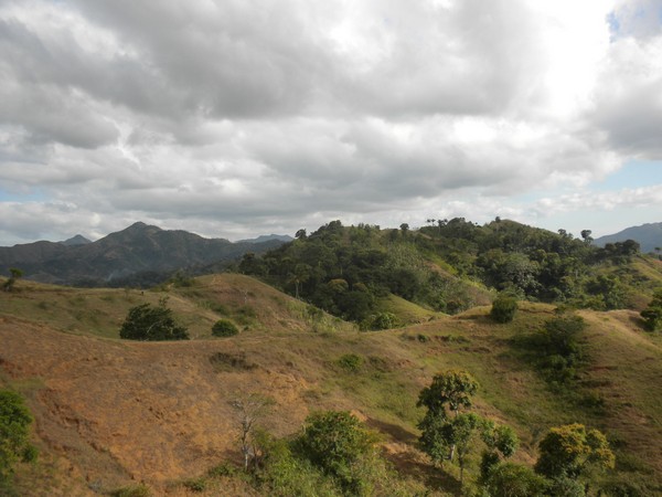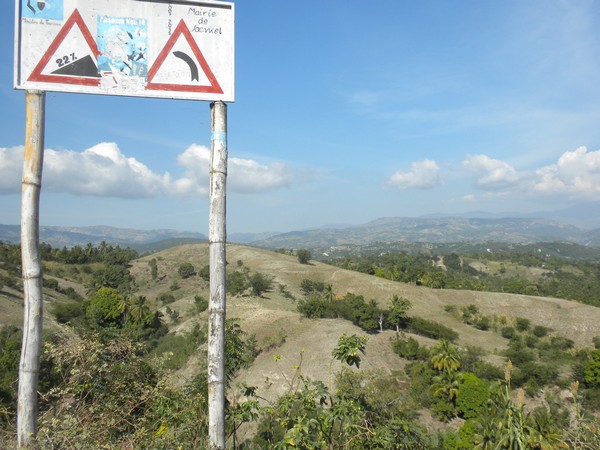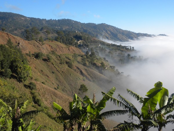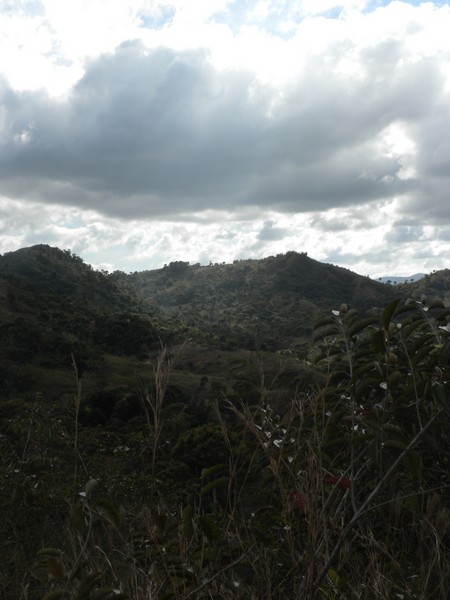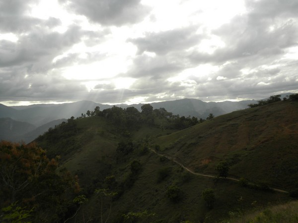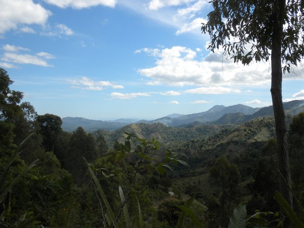 When I got up early the next morning, my host was nowhere to be found, so I cleaned up as best I could and took off walking. A man along the road welcomed me and bought me a cup of coffee and some bread; there was no water filling station around, so I bought 5 of the 4-ounce plastic satchets which would hopefully last me through the next set of mountains. I followed a difficult 4wd track through a long series of ups and downs until it ended in a small village; I neglected to write down its name, so I will refer to it as simply "The Village of Thieves". I passed through this place, and began following a trail in the direction of Dondon; a couple of villagers spotted me and asked me if I were lost, and directed me to follow a nearby trail that would get me to where I needed to go. Shortly thereafter, however, they decided it would be better if they could extract some money from me, and chased me down, and told me I couldn't go the way I was going, and that I would need to return to the center of town and follow a different path. The leader of the group, Alize claimed he was a police representative and went through the usual routine of asking to see my identification and what was in my pockets and bag, and told me that, the trails were quite convoluted and, for my own safety, he wouldn't let me leave without a guide. After debating this point for some time, I finally relented and said I could pay up to 200 gourdes. No one seemed all that thrilled about walking all the way to Dondon for that sum, but finally one man volunteered. Alize demanded that I pay the money then and there, but I argued that this was not standard protocol and he eventually relented, but there was little ambiguity as to why my guide carried a machete along on the hike. Alize made me agree to talk to my organization about buying him a laptop for school when I returned home; he would call me about fifty times over the remainder of my trip to remind me of this fact.