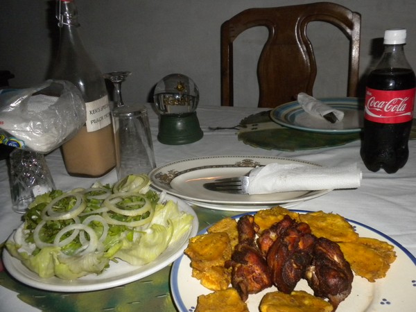 Shortly after reaching the main road, a man on a motorcycle stopped and asked me if I needed a ride; he explained that he was a marine (and even showed me his marine card), and took me to the coast for free. The trail to the top was extremely steep and treacherous; the stairs that had once provided easy access were now little more than intermittent piles of splinters and rusty nails. I reached the top and could find no view, but was informed upon my return to the road, that, had I ventured a little further back through the woods on a rough trail, I could have beheld a dramatic cove, formed from a volcanic crater, which was filled with circling sharks. I had met a guy from Miami on the trail who offered to give me a ride back into town; I looked with some degree of skepticism at his two friends and one motorcycle, but they ran a quick shuttle to get us all back. We went to a fried chicken place and got several boxes of chicken fingers and French fries; judging from the sheer number of pica de pollo joints, and the crowds that patronize them, this seems to be more or less all that Dominicans eat.
