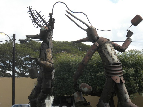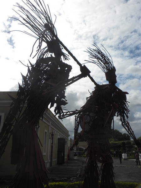 The central square of Gonaives is unexpectedly clean and well put together. A giant, modern church sits on one side, an impressive monument sits in the middle, and a stage in one corner is set up to host outdoor performances. Snipers sit at a few of the high points around the square, hiding behind sandbag barriers. I wandered around and talked to random college students. A crazy man wearing a baby bib soliloquized about something to a bemused crowd. Several roulette wheels were set up and kids were throwing down gourdes in the hopes of winning it big; each wheel had colorful action figures like Jar Jar Binks in the middle.