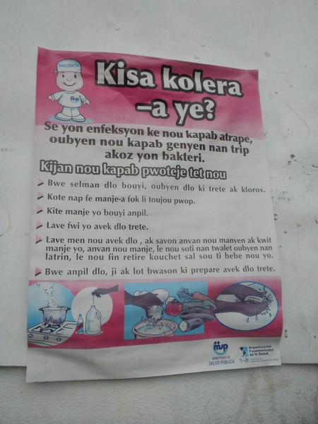 I followed a rocky trail alongside hundreds of Haitians, most of whom were carrying large bundles on their heads; one woman carried 4 full-grown turkeys in this way. A string of towns along the amazingly scenic ridgeline offered markets, stores, and food vendors. Since I had not been afflicted with the usual case of diarrhea that usually hits me the second I step foot in a third world country, and since I had a good ten hours of walking in front of me, I figured it was pretty important that I order sketch street food from a lady with a bunch of pots in the dirt on the side of the trail. For 75 gourdes, I got a big plate of fried spaghetti with mayo, ketchup, Texas Pete, bits of sausage, tomatoes, lettuce, and onions; I think I was supposed to get soup, an egg and some coffee as well, but these had been lost in translation. Just down the road, some guy on a motorcycle pulled up next to me, gave me an inquisitive look, and asked "Cholera?"; I nodded to indicate that I knew about cholera, and he repeated the word a few more times in various tones.