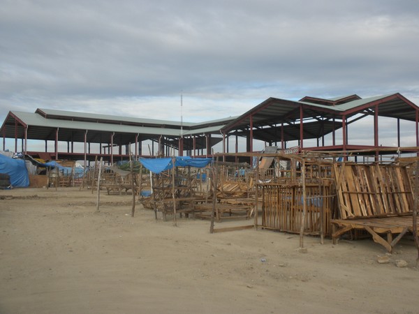 I got up at 7 at the sound of sirens which I surmised signaled the opening of the border. Racing to get ready, I reached the immigrations office at 7:30, only to find that it wouldn't be opening for another hour and a half. So I wandered the streets and found a plate of yucca topped with spaghetti and accompanied by a cup of warm milk for 50 pesos. Returning to the border, the Dominican officials eyed my exit tax receipt curiously and then, figuring they had nothing to lose, told me to pay $25; I responded "Ya pague el impuesto" and they immediately stamped my passport and gestured to the door. A crush of Haitians were being held back by a giant metal gate; from time to time, one would thrust a passport through the crack, a soldier would look through it for a visa, and then, open the gate just far enough for that one to squeeze through. I shoved my way through this mass of desperate humanity and went to the Haitian immigration hut and paid $1 to get a stamp and departure card.