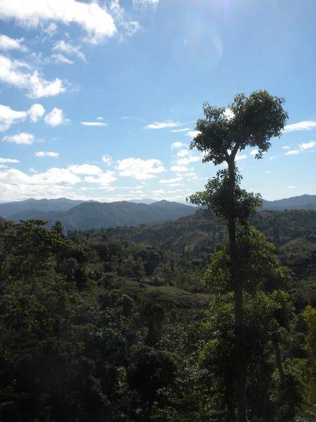 We went back up the road to Baba's house; Baba was a friend of Safaraz who did veterinary work for a livestock program administered by a Catholic church from Orlando. He was in the process of building an addition to his house for tourists, complete with a shower and flushing toilet, but at the moment, was able to offer me a very comfortable bed in a private room; this was presumably his, as he and his wife and the rest of his large family seemed to be sleeping on cots in the living room. Though Safaraz had offered to show me how to make chocolate out of cacao, we spent several hours not doing or saying much of anything while we waited for dinner to be prepared; things seem to move at a slower pace in the mountains. I had a long chat with Baba about a school he had recently started for around fifty of the area's children; he was currently conducting classes in a half-completed church building with no walls or roof and had an all-volunteer staff; I offered that I would ask around to try to find him funding for a dedicated school building and tuition for the area's impoverished families, most of which could not afford to pay even the meager 100 gourdes/month he was currently asking. After about three hours of cooking, when I was about ready to pass out, the women of the household called me into the dining room where they had set up an elaborate spread of chicken, patacones, salad, boiled plantains, and sauce; available to drink were two bottles of Coca Cola and a large bottle of something called ‘Ken's Special Punch'. Mine was the only place setting, and so I found myself eating a candlelight dinner by myself, with only the tinny melody of a snow globe to keep me company; the rest of the family presumably had their own food, but they had opted to eat elsewhere. I ate until I could eat no more, thanked the womenfolk, and promptly retired to my room. Someone brought me a chamber pot and explained its use; this seemed a tad unnecessary since there was a perfectly good toilet a hundred feet from my room.