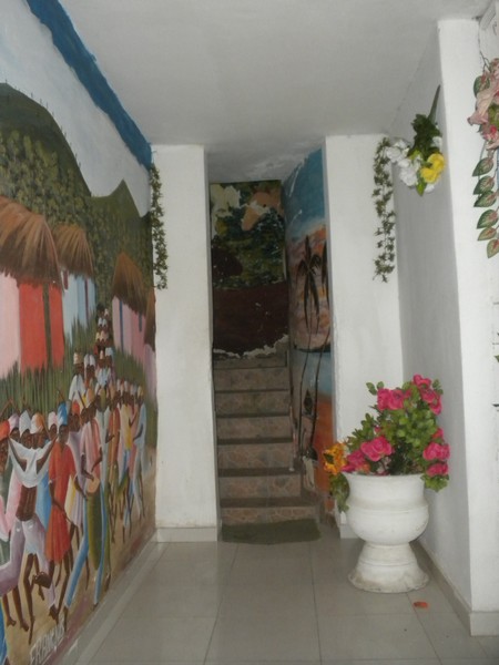 In the city, I waded through a few dozen blocks of chaotic markets and then set off to find internet. I enlisted the help of a local who took me to around eight cafes before finding one with a working connection. Exiting the café, it was already dark and I wandered about trying to track down a cheap hotel. The first I found was $55, and the next $40, then I found a place right on the main square with a listed price of $70, but the woman seemed very open to negotiations and I got my pick of rooms for $30. The place was ultra-kitsch; colorful murals adorned the walls and plastic flowers lined every hallway, and a bird call synthesizer resounded continuously through the complex until the power went out at 3am. My room was a suite with an attached kitchen and what appeared to be a shrine of some sort. Like in any Haitian hotel worth its salt, there was easy roof access, and from the top you had a bird's eye view over the square and the rest of the city. Wandering the dark streets for a time, I eventually found a dinner of spaghetti with ketchup and spicy mayo, then returned to the square to people watch, and headed for bed around the usual time of 8PM.