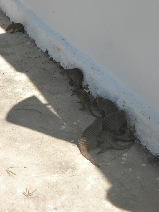 Our driver treated us to sodas and German chocolates and dropped us at the front gate. It had been a steal of a game drive for a mere 80R entrance fee. We thanked her and, with only a few hours of daylight remaining, drove to the next city. Filling up at a Shell station, we found that somehow 9.7 liters of gas had been put into my 9 liter tank; I mentioned this inconsistency in passing to the pump attendants but opted to push it no further. We got some corn mash (sadza) and beef at a supermarket and ate it on the side of the road; some random guys approached to ask how we felt about Obama and take our picture.