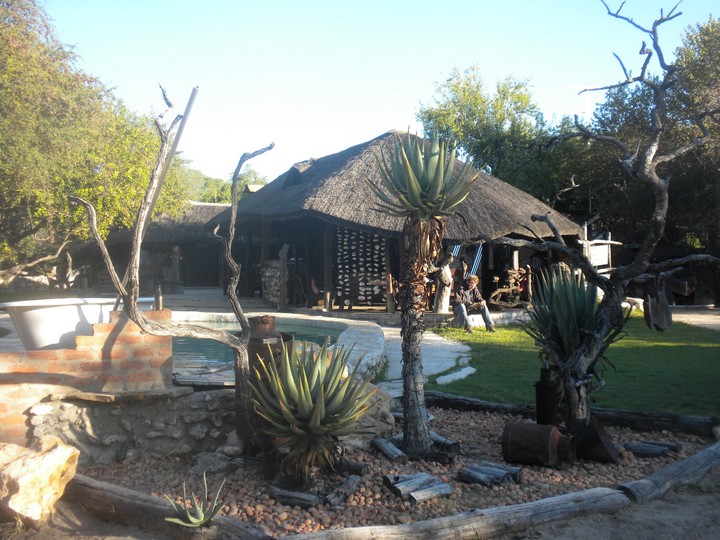 We drove into the night where I shortly found that, given that my headlight pointed up into the trees, it was not altogether useful for seeing what was in front of me. Every car that approached chose to keep its brights on, eliminating any hint of orientation left to me. For the last 50km, I had only the Force to guide me. Luckily, this, the mystical energy connecting all living things, did not let me down, and we reached Roy's Rest Camp (13km further than suggested by the book) without hitting any killer potholes or wandering antelope. The entrance to the camp was creatively adorned with a giant windchime made of cow skulls, and was the perfect welcome given the hour.