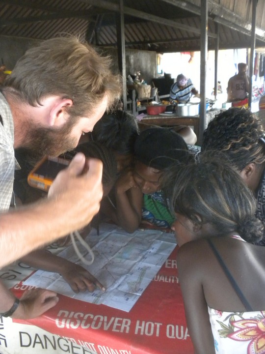 Reaching the city market, we found a line of women with buffets of food to select from. I got some rice, greens and potatoes for 15R, and found some donuts nearby for 50 cents each. Matt bought a watch practically identical to mine for 25R; we in fact believed it was identical - until he went swimming with it some days later and we were immediately led to doubt its 50m water resist claim, and we noticed that the manufacturers had neglected to print the "Casio" label that featured so prominently on the face of mine. Matt befriended all the restaurant owners and had each pick out her respective village on our map.