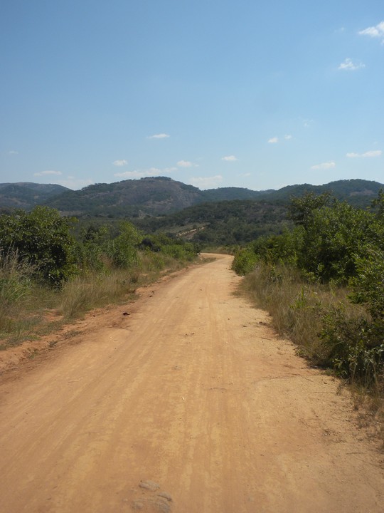 We were determined to stay in a village and so pushed right on past the town of Birchenough Bridge and up into the mountains. Dusk approached and we had yet to encounter a single quaint, traditional village; we stopped at a line of three bottle shops with a crowd of people out front to ask for advice. Not surprisingly, most of the men were reasonably wasted and offered little in the way of constructive input; one ranted about how much he hated Americans and the others either assured us that our plan was 100% safe and we should not hesitate to continue on and approach the next village we spotted, or told us that the idea was ludicrously stupid and insisted that we return to the town immediately and get a room at the hotel. When a non-inebriated guy in a pickup truck pulled up and strongly advised us to return to the lodge, we reluctantly assented and returned back down the mountain with little more than the light of the moon to guide us. The hotel was under construction and lacked certain amenities to which we had become accustomed - like running water and electricity - but for $5 each, they let us set up our tent on the lawn next to the empty pool.