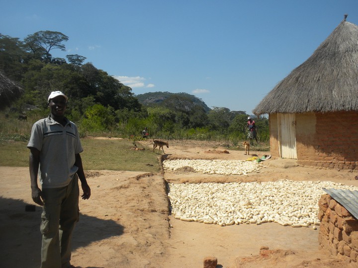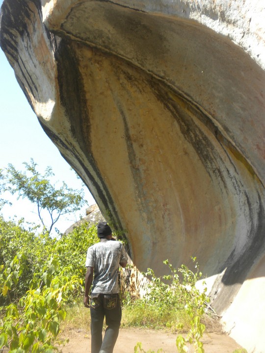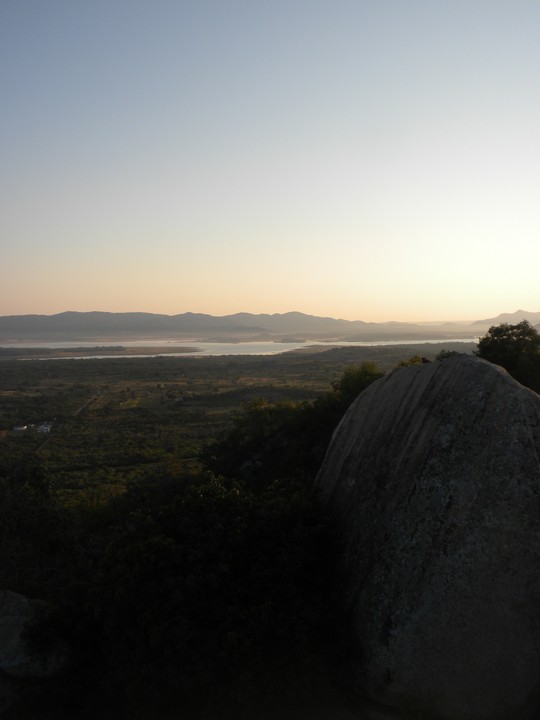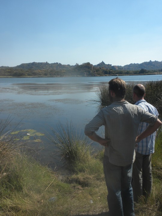 Back at camp, we made scrambled eggs and okra, then set out on another superbly fun and scenic road along Lake Kyle. Many a time we considered stopping at a random village, introducing ourselves, dropping off our stuff, and spending the rest of the day scrambling over the endless sea of rock that beckoned us at every turn. A star on our map and a highway sign led us to believe there was a cave of some interest 8km down a gravel side road. There was no further signage, so once the indicated distance had passed we just started asking random villagers. We wandered across a few farms and met Pete, who had the previous year bought several acres of farming land in a stunning valley, a nice brick hut, and a shed for the grand sum of $250. 'Zimbabwean farmer' was suddenly a rather appealing and very realizable career path. Pete directed us to return to a point a few kilometers back and ask someone else. When we believed we had arrived at the prescribed point, we found Prince, a youth from Harare who claimed to know the caves. He and his two young cousins guided us on a mile hike up the road to a boulder pile, where he directed us to an overhang that contained a handful of pretty standard bushman paintings. We had our suspicions whether this was actually the advertised cave, but we gave him a $2 tip anyway and returned to the highway.