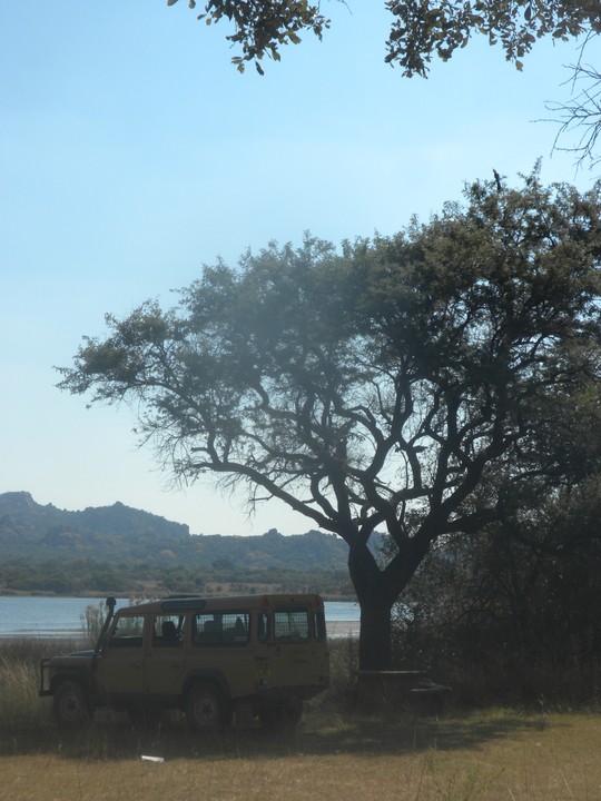 The park had dozens of kilometers of 4wd roads. We never actually spotted any animals besides a loan giraffe and some hippos, but a car that followed close behind picked out a leopard that we had apparently missed. We stopped at a watering hole for a good two hours; Mike smoked half a pack of cigarettes while we watched the sun sink further and further in the sky.