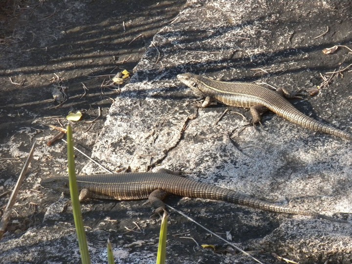 Arriving at the gate to the Bambata Cave trail, we found no one and resolved to just ride our bikes to the top. As we awkwardly tried to raise the gate and push each of the bikes through, a guard appeared and asked for our receipt. Since we had nothing of the sort, we had to go another kilometer down the road to the game park entrance. At this gate, we found Mike signing in, preparing to drive through that section; we quickly stashed our bikes in the bushes, paid the admission fee and jumped in his jeep.