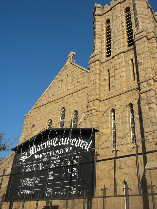 Matopos is a National Park south of the city that promises cool rock formations, leopards and rhinos. Once again it seemed we wouldn't be able to access it with bikes, so the previous night, we had spoke with a man by the name of Mike, who was staying at our hostel, about the possibility of going with him in his jeep the following morning. He was amenable to the idea and we were supposed to meet him at a bar for drinks and to discuss specifics. This never happened and so we didn't realize that we would have needed to be ready at 6am for his pre-dawn departure. I walked across town to catch 6:30AM Mass in the cathedral; the assembly consisted of me and two dozen nuns.