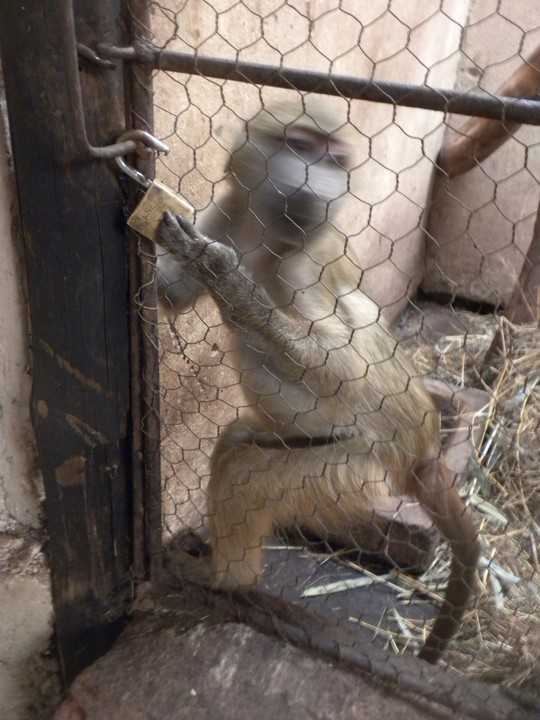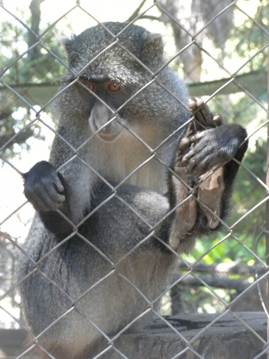 We putzed around town all morning and didn't get on the road until after noon. A few kilometers down the road, we came to an animal orphanage, and since we were at risk of arriving in the daylight if we pressed on, we figured we had better stop for a bit. The orphanage had seen better days and many of the cages were overgrown and several of the fences had doors hanging off the hinges; it was rather reminiscent of Jurassic Park after things had gone downhill. There were still a few leopards and some monkeys that closely resembled Dobby the House Elf. We met a kid from Harare who was applying to the computer science departments at MIT and several other Ivy League schools; apparently there is stiff competition for such spots, with an average of two-hundred Zimbabweans applying for a single space. He tried not to be too patronizing when I told him I had graduated from the UF CS department.