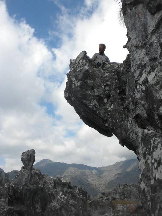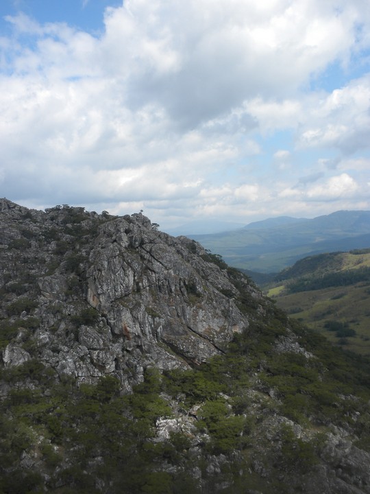 A long, rough 4wd road took us into the national park. Since I hadn't managed to withdraw any money recently and we were down to our last fifty bucks, I told the ranger we might not be able to afford the $10 entry fee and $8 per person camping fee; not about to turn away 50% of his business for the day, he dismissed the issue and said we could figure it out later. We tried our best to follow the trail to the ridgeline but immediately got lost and did a fair bit of bushwhacking up the cliff face. At the top, we found an extensive boulder field and spent some time seeking out routes on a rock we labeled 'the dragon'; we lamented not strapping a couple crashpads to the backs of our bikes. Just beyond this was a cabin complete with rocking chairs, running water, toilets, and mattresses that probably hadn't been cleaned in twenty years. An old woman sitting there explained that her friends had gone off to look for frogs, but she had no idea where the trails were. We followed a couple fairly convincing trails, which ended abruptly in streams, before discovering one that dropped straight down from the front porch and into the valley below.