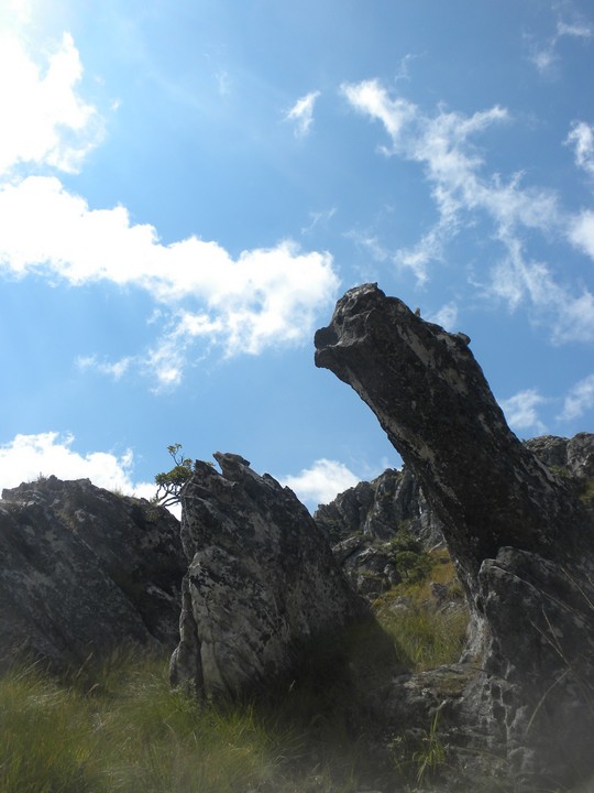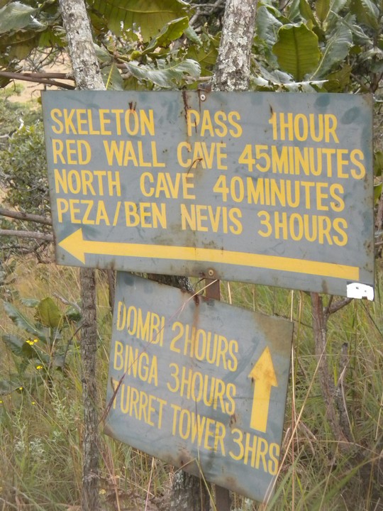 We went to a waterfall and 'cave', which turned out to be nothing more than an overhang, and then bushwhacked to Skeleton Pass, a route once used by guerillas to travel between Zimbabwe and Mozambique. At the base of the trail up to the pass sat a shack with five border guards and/or park rangers; one was completely naked and bathing in the middle of the trail; we exchanged the usual pleasantries as we awkwardly edged around him. With about an hour of daylight remaining, we raced up to the border, then returned at a fast clip to the cabin. The backpackers there advised us to stay, but we weren't too keen on spending the night without our sleeping bags, so we pressed on to our campsite. My headlamp was dead, but using only Matt's we managed to find our way and not trip over a cliff; surprisingly, we managed to follow the trail much more faithfully than we had in the daylight. Our gas was out, so we built a fire to cook pasta and curried vegetables. The rain started a few hours later and we soon discovered how truly rain-unworthy our cheap tent really was.