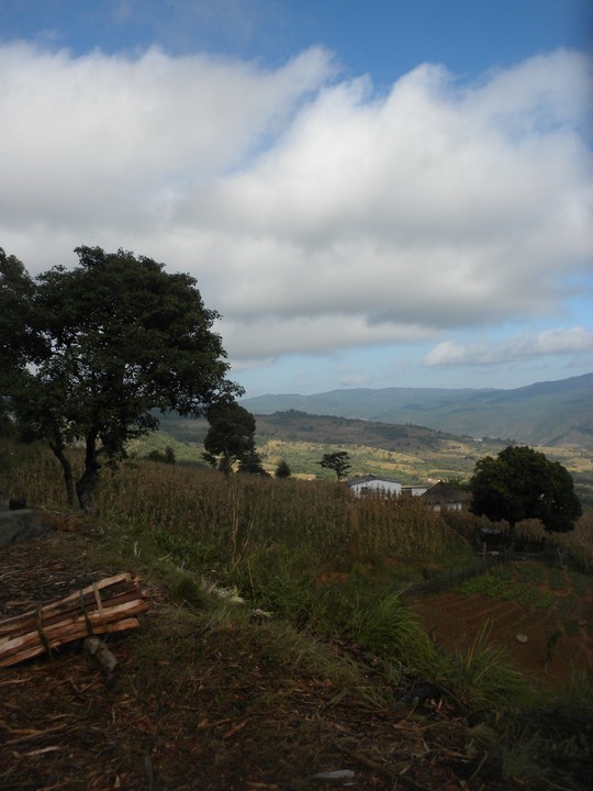 I wanted some bananas for breakfast; probably two or three would've been just fine, but this wasn't an option in the town market. The only possible quantity in which one could procure bananas was 30 for $1. I secured these loosely to my bike and managed to eat about a tenth of them before losing them all to a speed bump or pothole along the way. A mist hung over the mountains and the high passes were downright frigid; all of our extra layers, which had been nothing but excessive up until this point, were now woefully inadequate, and we resolved that, if ever it should begin to rain, we would have no choice but to pull over and set up our tent. At every road junction, farmers with bananas, avocados, and apples would run to us to try to be the first to satisfy our obvious need for absurd quantities of perishable foods; I did ever so briefly consider the fifteen avocados for a dollar deal. Reaching the village of Chimanimani, we walked through a butchery to a wooden shack placed interstitially between two storefronts; there we found some of the best chicken I'd ever tasted, accompanied by sadza and spicy cabbage for (drum roll) $1.
