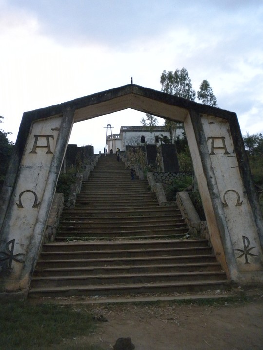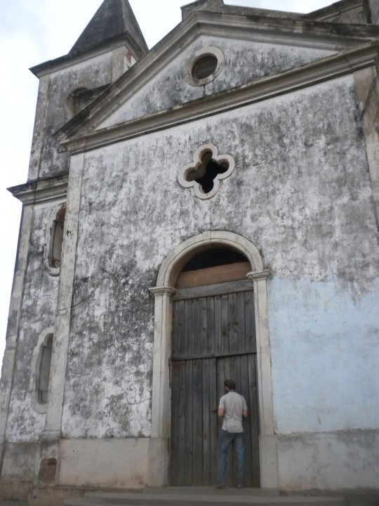 Manica province, the region adjacent to the Mutare border, is home to beautiful mountain scenery and a high density of picturesque little villages. We hadn't seen many motorbikes in our travels until now, and especially nothing like ours, but here, the Chinese Lifan was the vehicle of choice. When we pulled into Manica and saw the medieval church upon the hill, I knew we had no choice but to forfeit any additional kilometers we might make that night and stop there. We got a room in a pensao, which was more of an apartment complex than a hotel, for 600Mt, and stored our bikes in a dungeon-like area in the back.