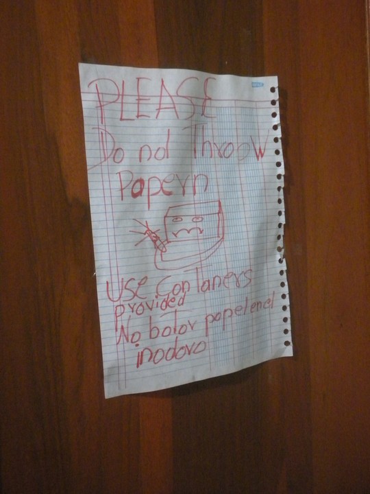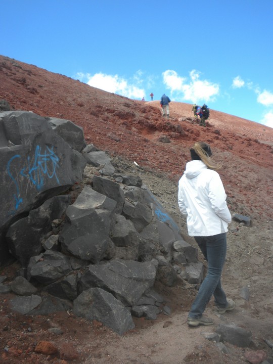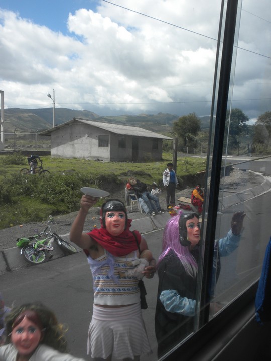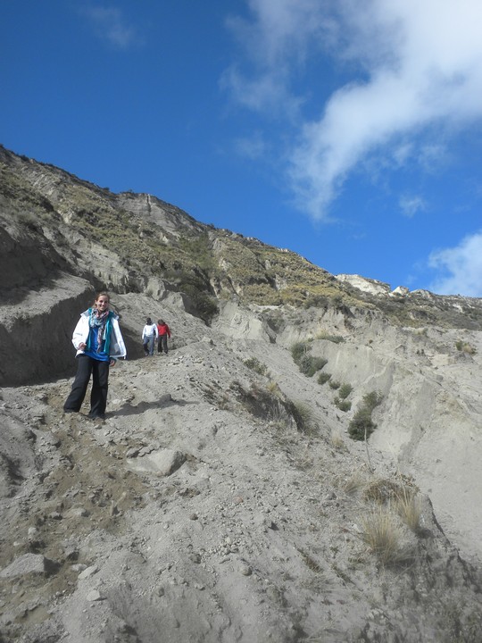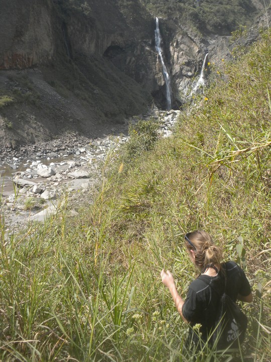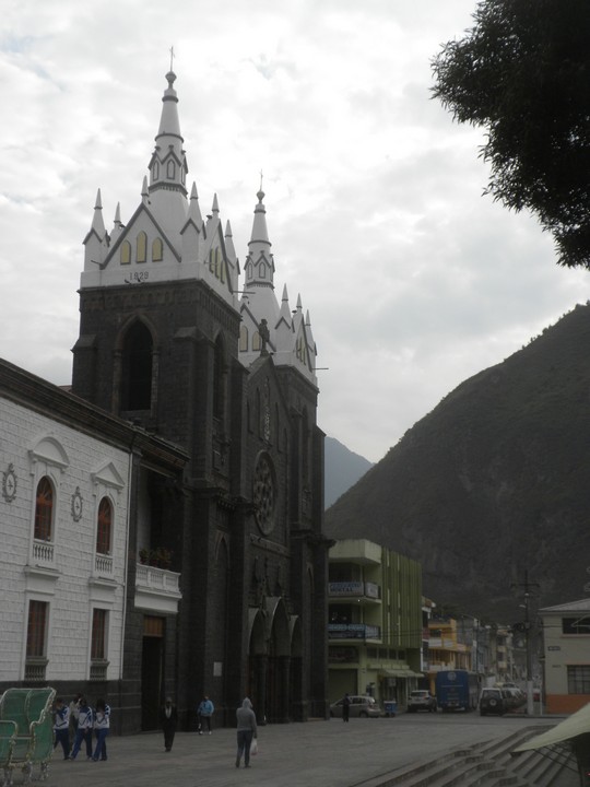 Had it not been for Leslie, I might have spent my whole time in Banos believing I was in mortal danger of becoming the next hapless victim of a horrible epidemic, but with her amazing ability to converse with people, in spite of the absence of English speakers , the mystery was unraveled in a matter of minutes. Banos was at the base of an active volcano and, as luck would have it, we had arrived the day after the biggest eruption in the last 7 years. Our hotel, Hostal Erupcion, issued us masks alongside the normal assortment of soaps, shampoos and towels.