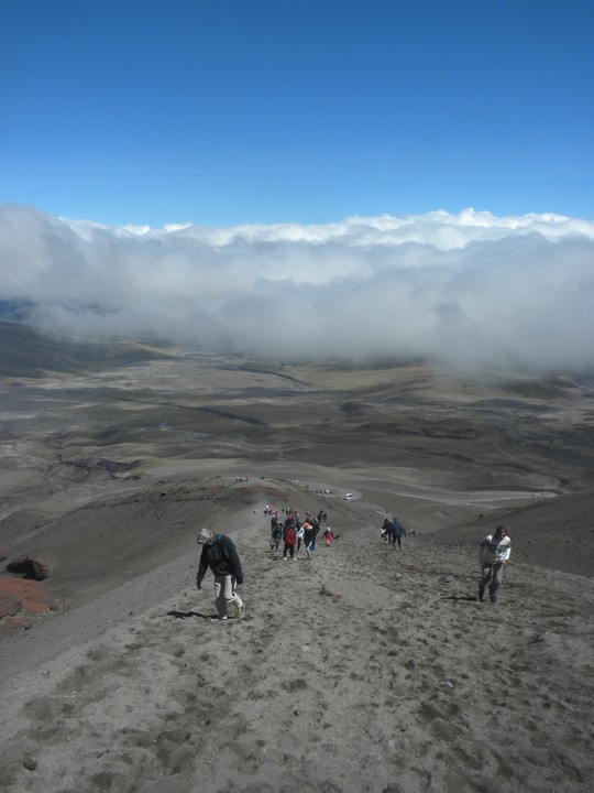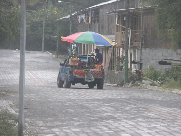 The apocalypse had come a few days early to Banos. We stepped off the bus to find the town painted in a pale grey. Children and adults alike walked the streets in surgical masks in defense against some invisible threat. On every corner, brooms worked fastiduously to sweep up the layers of dust that blanketed the streets. Was this the detritus of victims of a deadly air-borne disease that had slowly disintegrated, their family and friends unable to offer any response to their enfeebled cries?