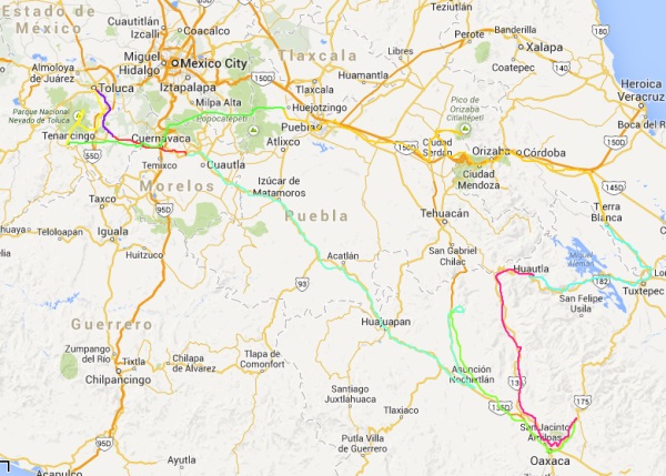 FLL -> Toluca -> Malinalco -> Tepoztlan -> Santiago Apoala -> Pueblos Mancomunados -> Huautla -> Pico Orizaba -> Itza -> Nevado de Toluca -> FLL