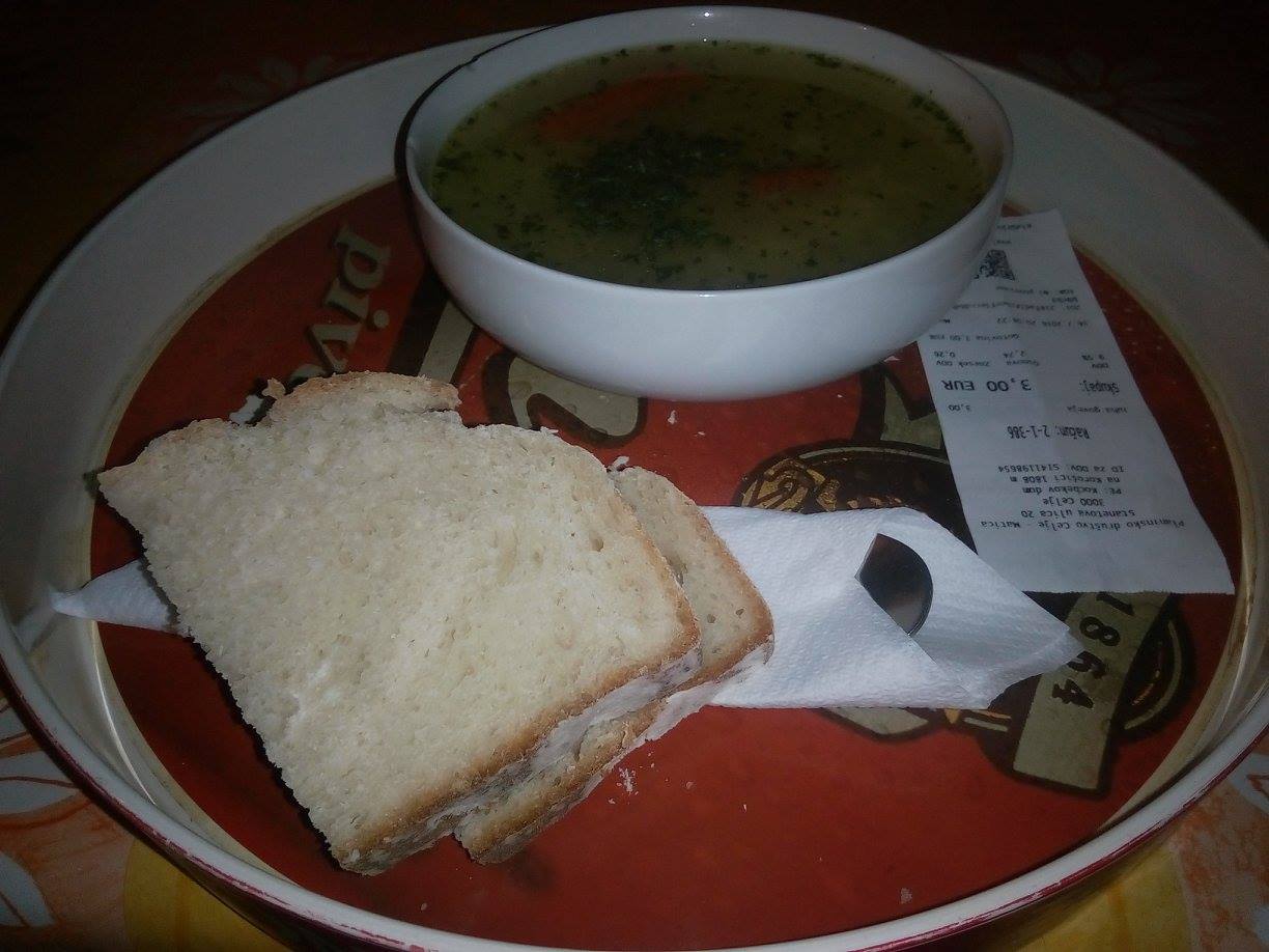 Big soup with bread at Slovenian mountain hut: 6.50 EUR