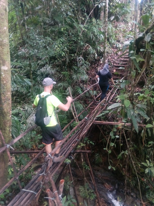The trail repeatedly crossed into the Indonesian state of Kalimantan, but there were no border guards. We had been told by several, likely very racist, Malaysians that this neighboring territory was full of dangerous tribespeople, who were ready to rob, murder, and possibly eat any hapless traveler that might wander through their villages. Fortunately, there was a formidable precipice that kept the savage hordes from overrunning the resort.