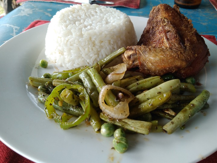 Room service dinner of rice and veggies: 1500 TZS