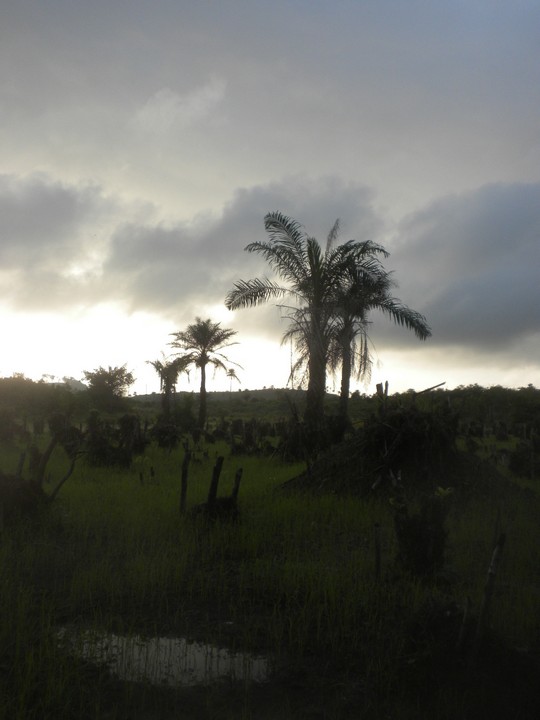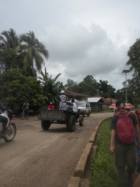 Our poda poda broke down 5 minutes out of town and we called up Caulker's guy who picked us up in his Peugeut compact. Since there were only four of us, and no one was sitting in the cup holder and straddling the stick, we were expected to pay for two additional tickets; our supervisors split the difference. Nick's supervisor taunted the driver for not driving fast enough and passing other cars – this on a road that was clearly not designed with 2WD in mind. I moved into Chris's house; he had left a weight bench, a kerosene stove, a GPS, 8 cans of hummus, toiletries, random books and plenty of other random stuff; it was a strange feeling taking over someone's life. Caulker took me out for lunch and we got cutting grass stew (a large bush rodent that looks a lot like an otter), and he subsequently ordered four rounds of beers. From there, we went down the street to his uncle's house who was turning 80 that day; in a few minutes, gallon jugs of bamboo wine arrived. We ate antelope stew and drank on his porch until 11 that night. Fortunately an NGO woman arrived and gave me an out, noting that I was probably tired from my long journey, and I was able to get home just before a torrential downpour which apparently held them captive on that veranda until 4 in the morning.