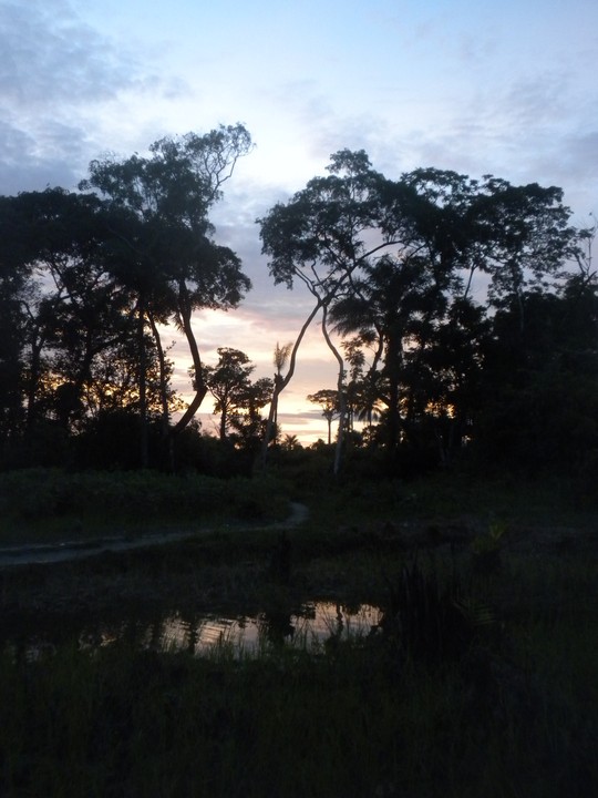 The neighbors made me a delicious batch of rice and green (a type of plasa), and in the twilight, I hiked up the adjacent hill to sit atop the cistern. From this perch, I could take in the karsty peaks that encircled Jaiama, and the mist-filled valleys, and the thunderheads rising up from the horizon, with bursts of heat lightning rippling through them, and the stars that had begun to emerge as the final pinks and blues of dusk faded away. I climbed down and walked home through a sea of fireflies, with volleys of chirps and ribbits and hoots that would make any Sounds of the Rainforest CD green with envy.