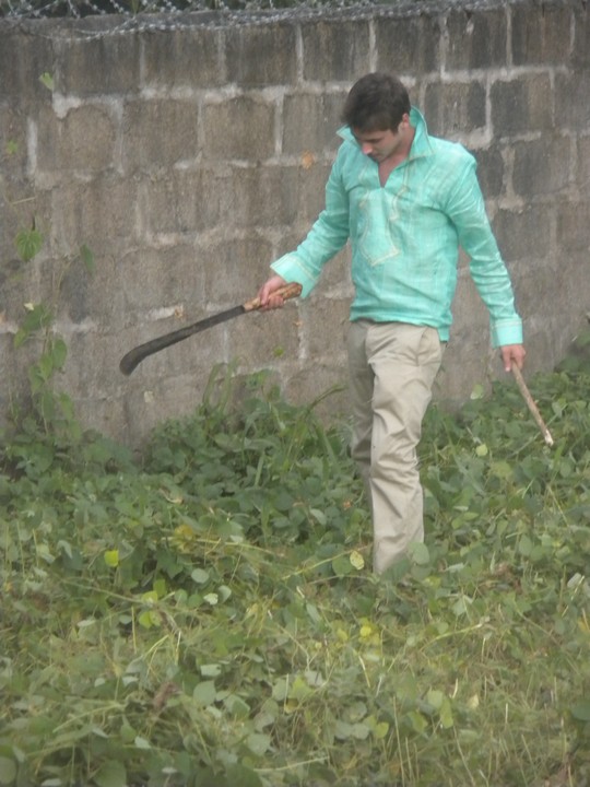 News of a mandatory Saturday session sparked an uproar. It was bad enough that they managed to fill 9 hours of every weekday with senseless classes, but now they wanted our weekends too? We finally convinced them to cancel all our breaks (not they couldn't possibly slice an hour off the 3-hour gender equality talk) and move Intro to Islam and our gardening session up a day. "It's going to be a long day, don't expect to go home at 5:30", Tondi cautioned. Our gardening session turned out to be an excuse to use us as slave labor to expand the Mapco farm; there was no teaching aspect – we just spent an hour hacking away at weeds with machetes.