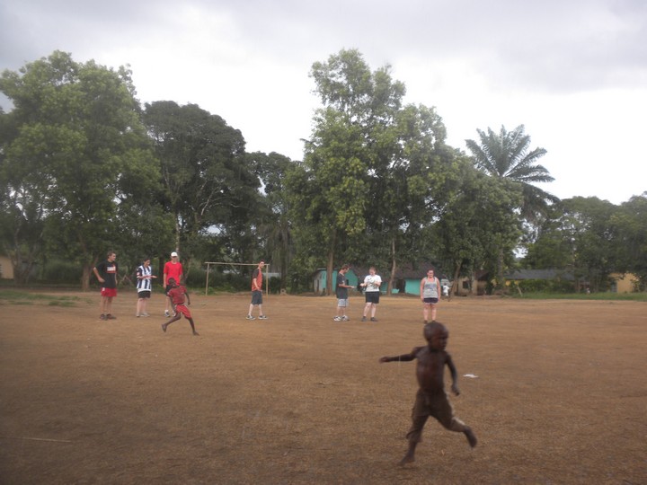 The volunteers played touch rugby after school – while perhaps not as dangerous as the real thing, it was still plenty hazardous on account of the rocky, muddy, razorblade-strewn field.