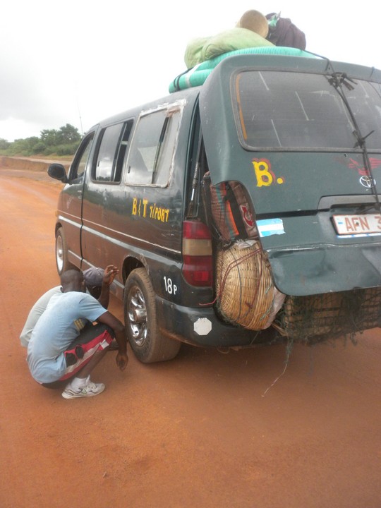 Our poda poda broke down 5 minutes out of town